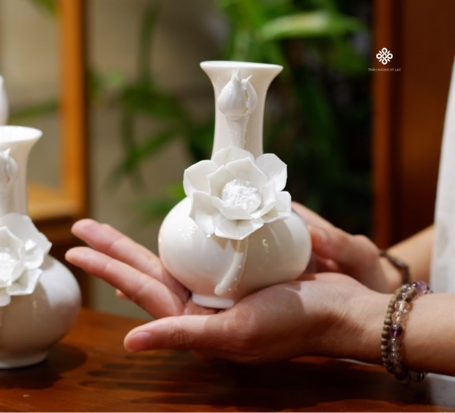 Chất liệu: sứ trắng Chiều cao: 12.5cm Đường kính thân bình: 7.5cm