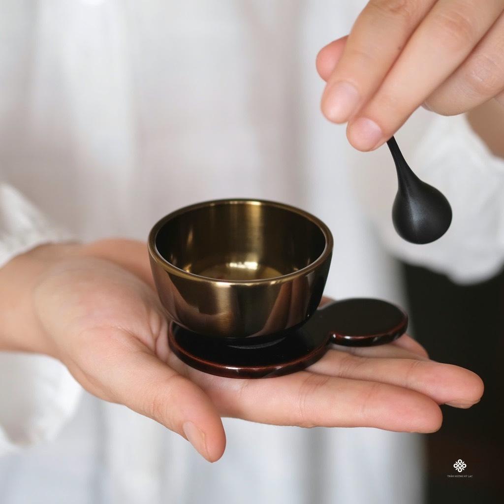 Chất liệu: chuông đồng, gậy nhựa đàn hồi, đế gỗ công nghiệp