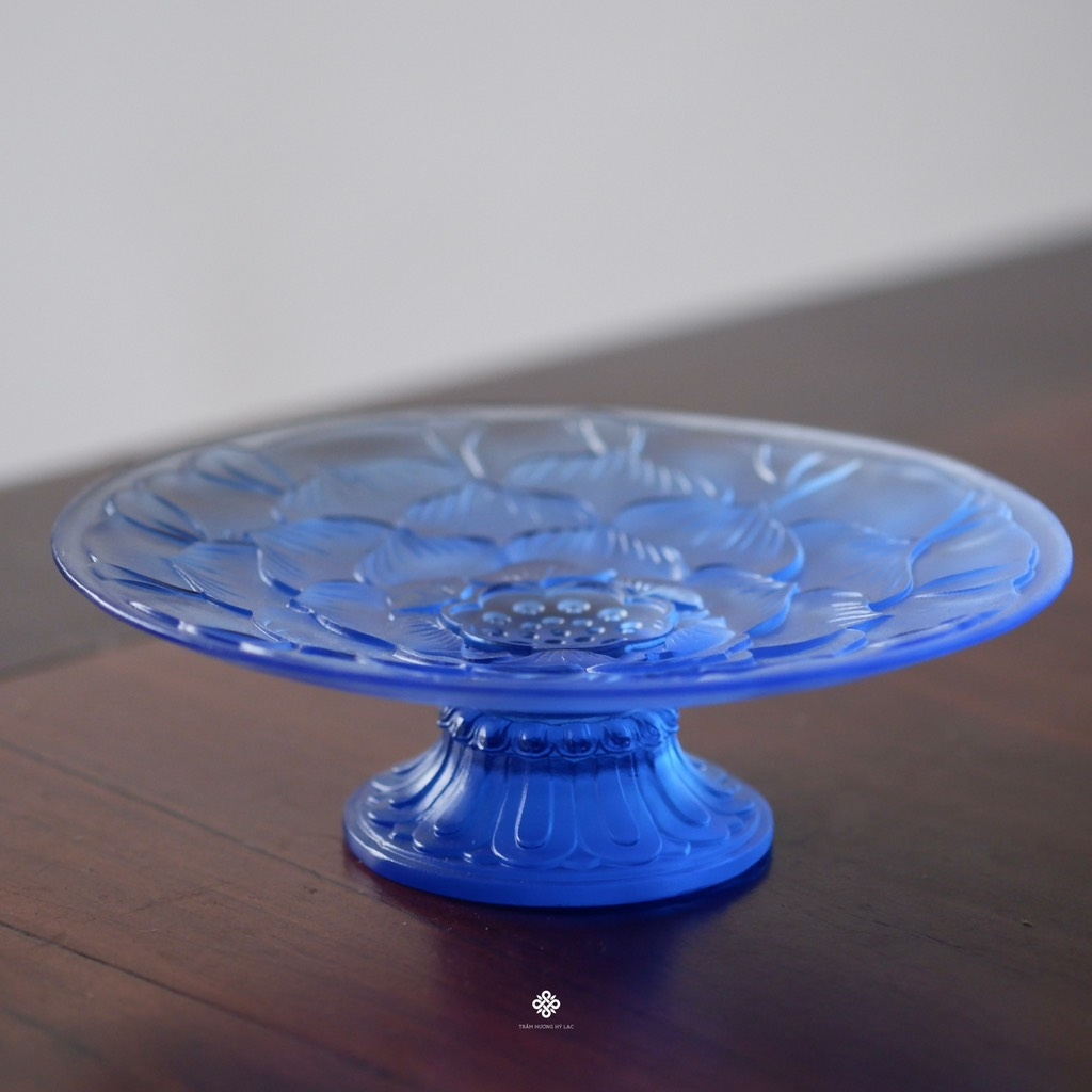 Đĩa bồng hoa sen lưu ly xanh dương