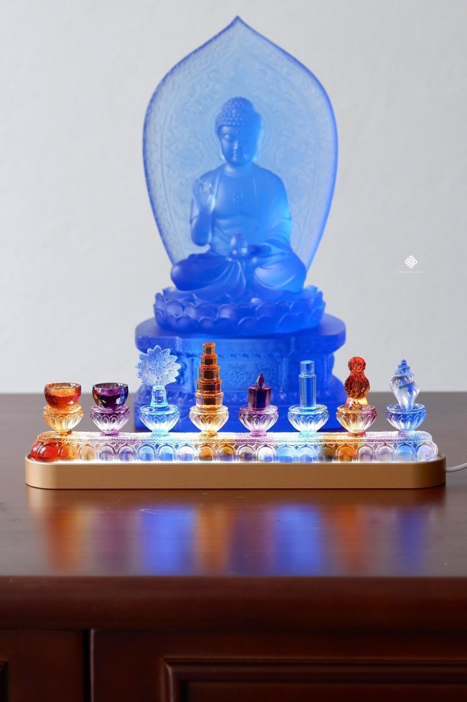 8 lễ vật cao quý dâng lên ban thờ Phật: nước uống, nước rửa chân, hoa, trầm hương, đèn bơ, nước thơm, thực phẩm, âm thanh