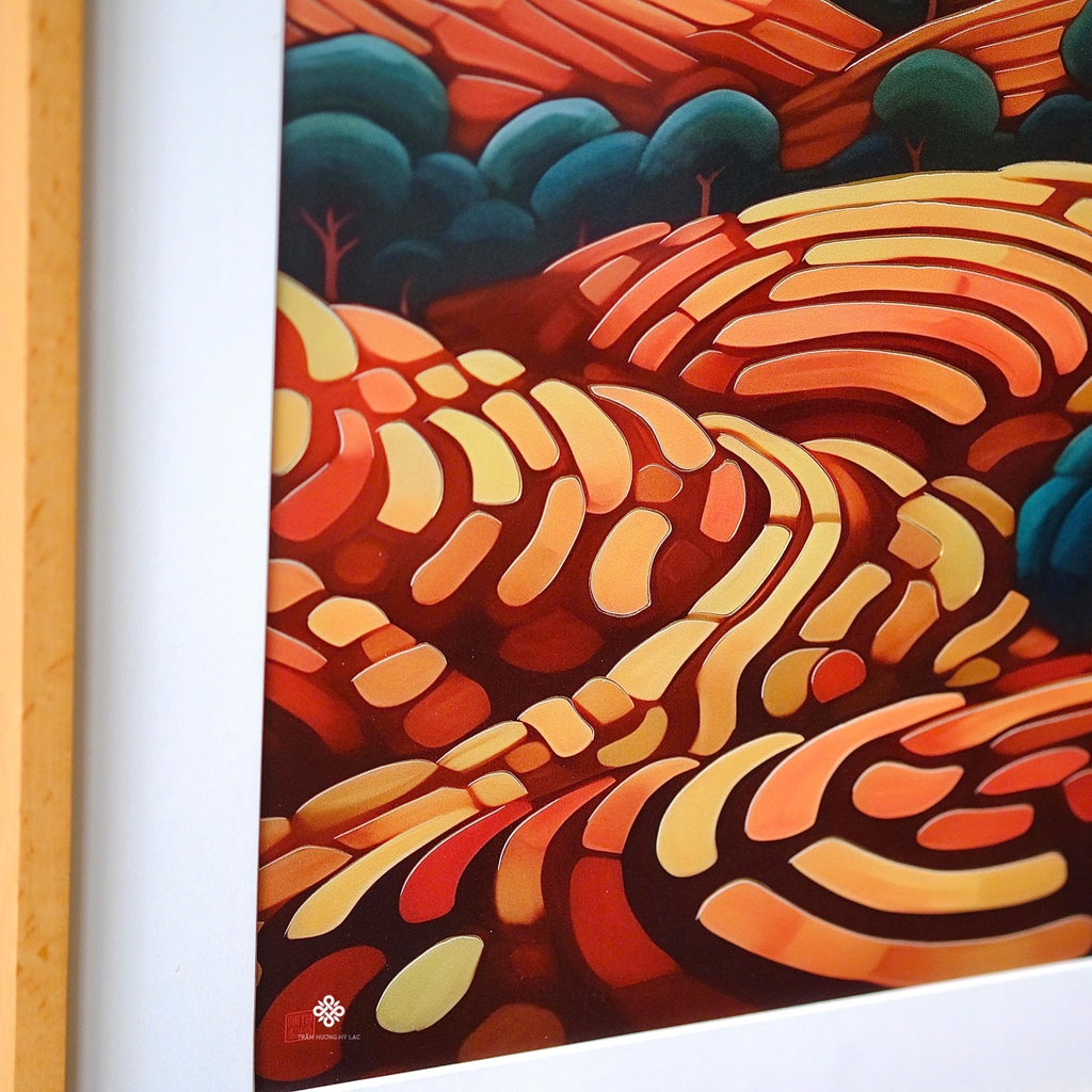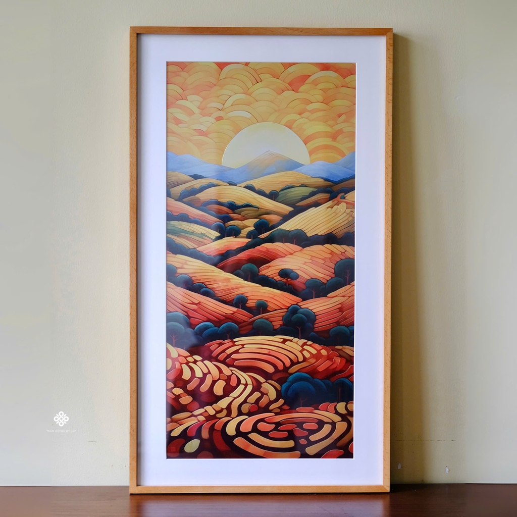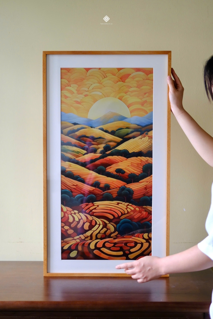Chất liệu: tranh đồng, khung gỗ sồi, kính cường lực