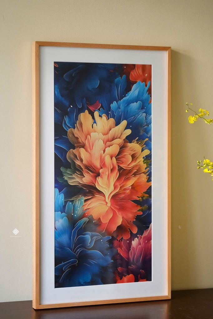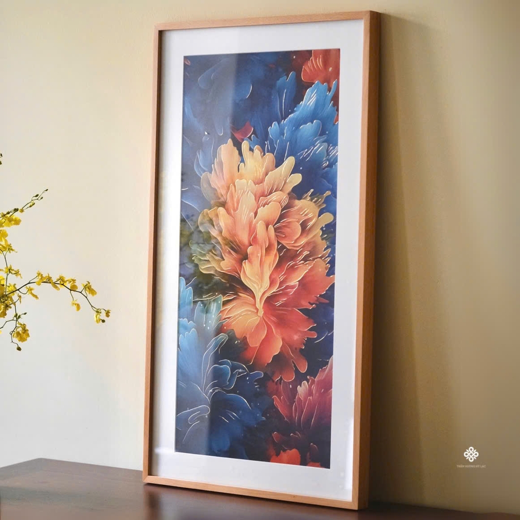 Chất liệu: tranh đồng, khung gỗ sồi, kính cường lực