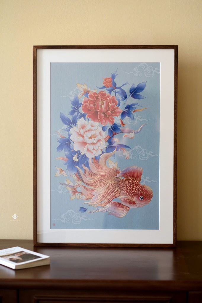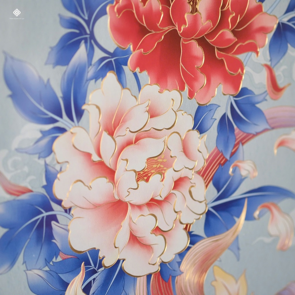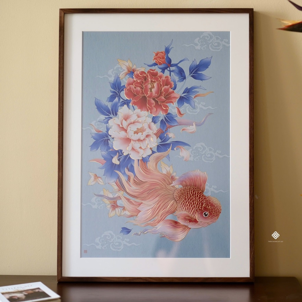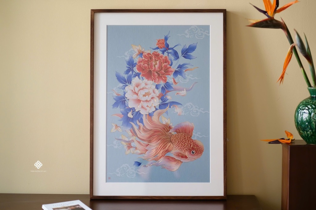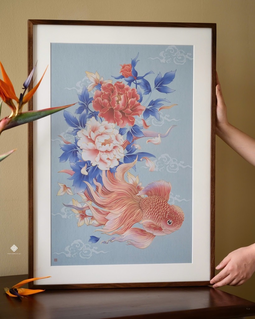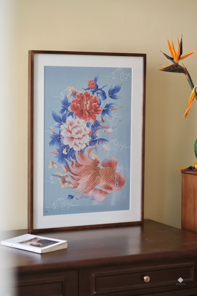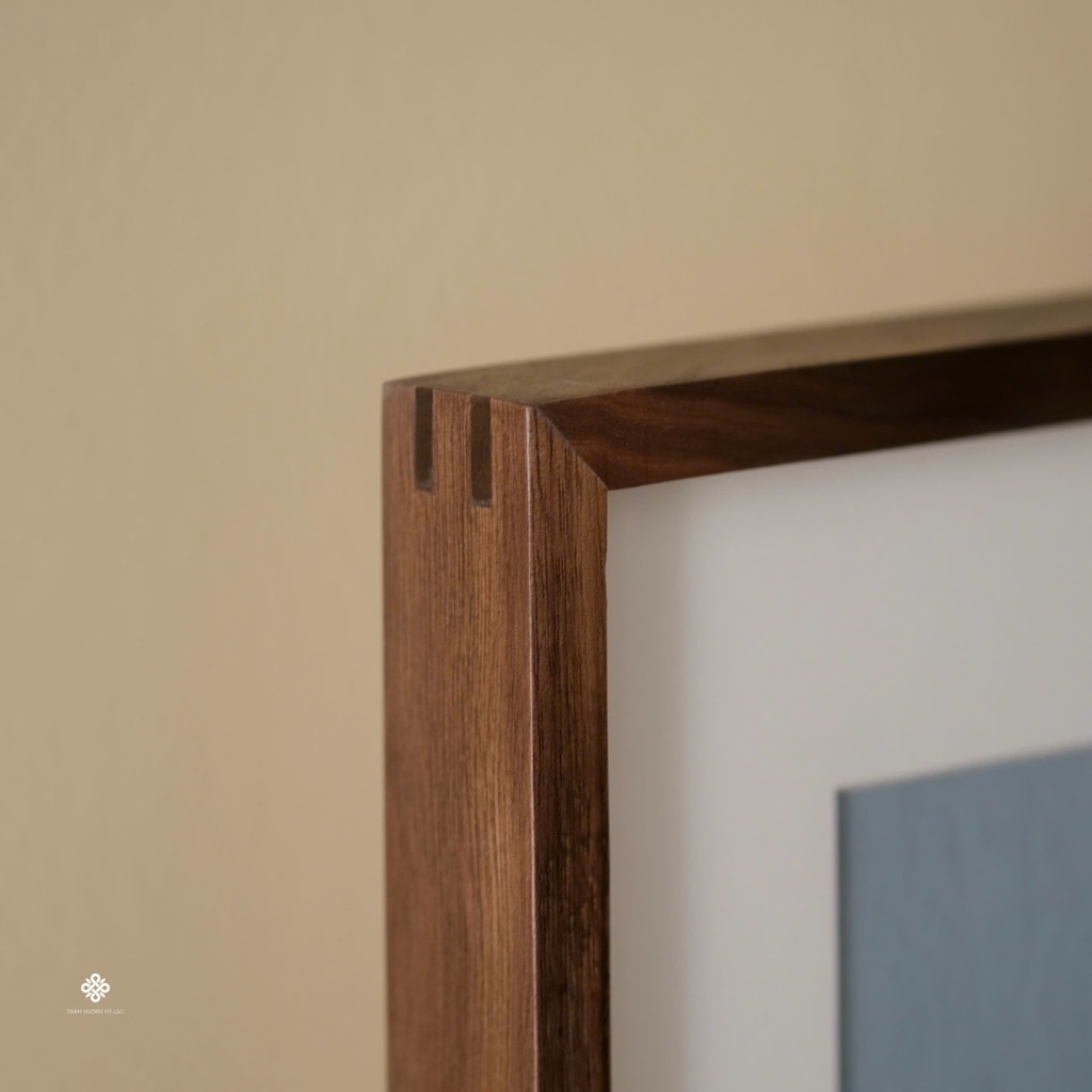 Chất liệu: tranh đồng, kính cường lực, khung gỗ óc chó