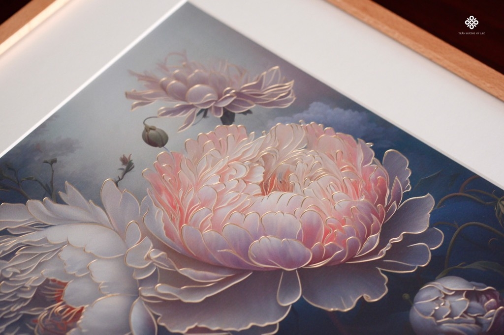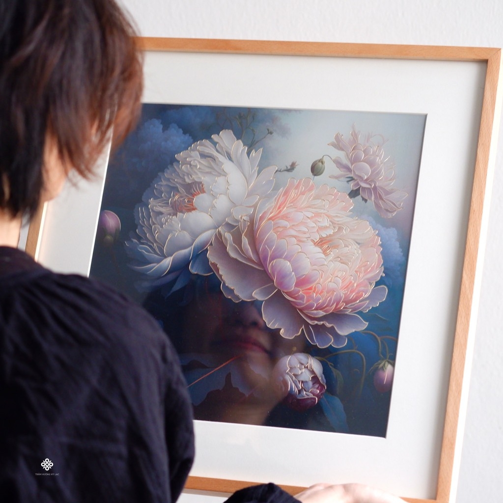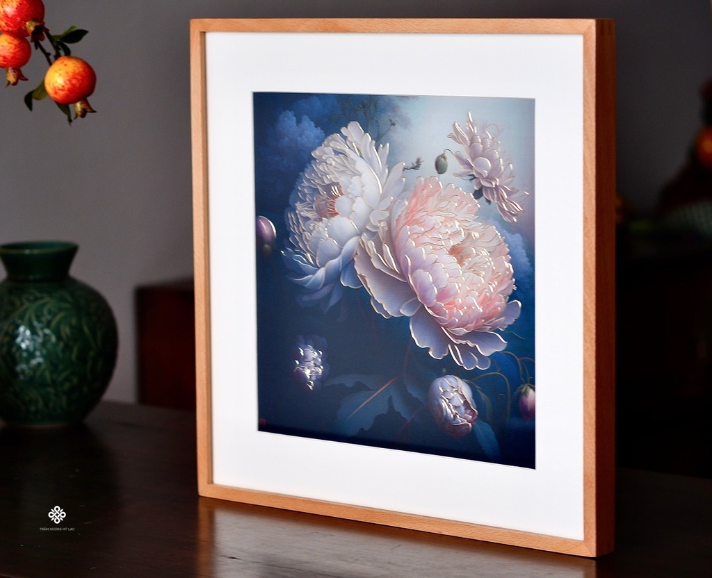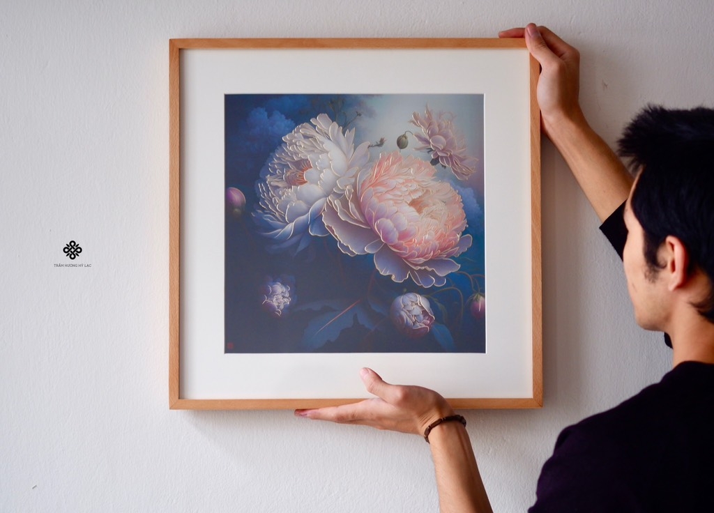 Chất liệu: tranh đồng, khung gỗ sồi, kính cường lực