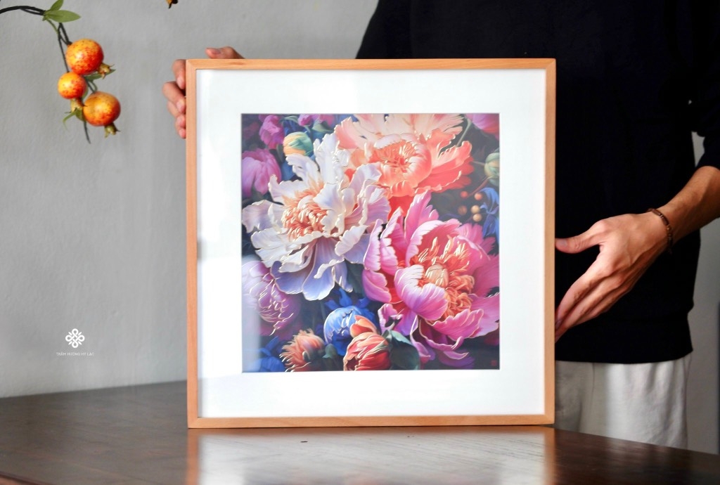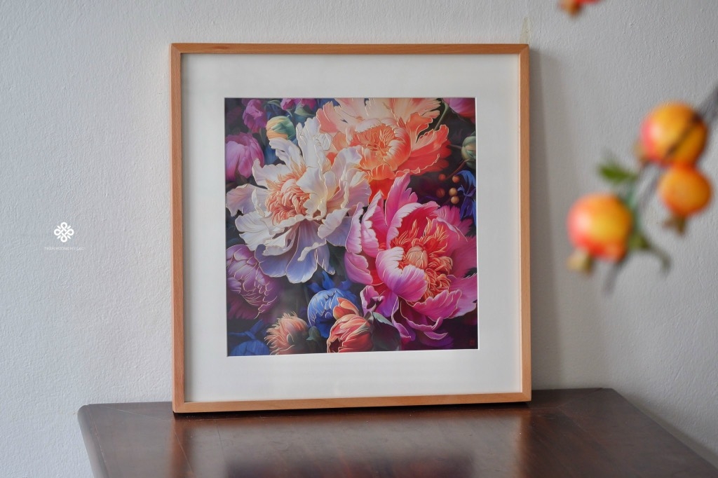 Chất liệu: tranh đồng, khung gỗ sồi, kính cường lực