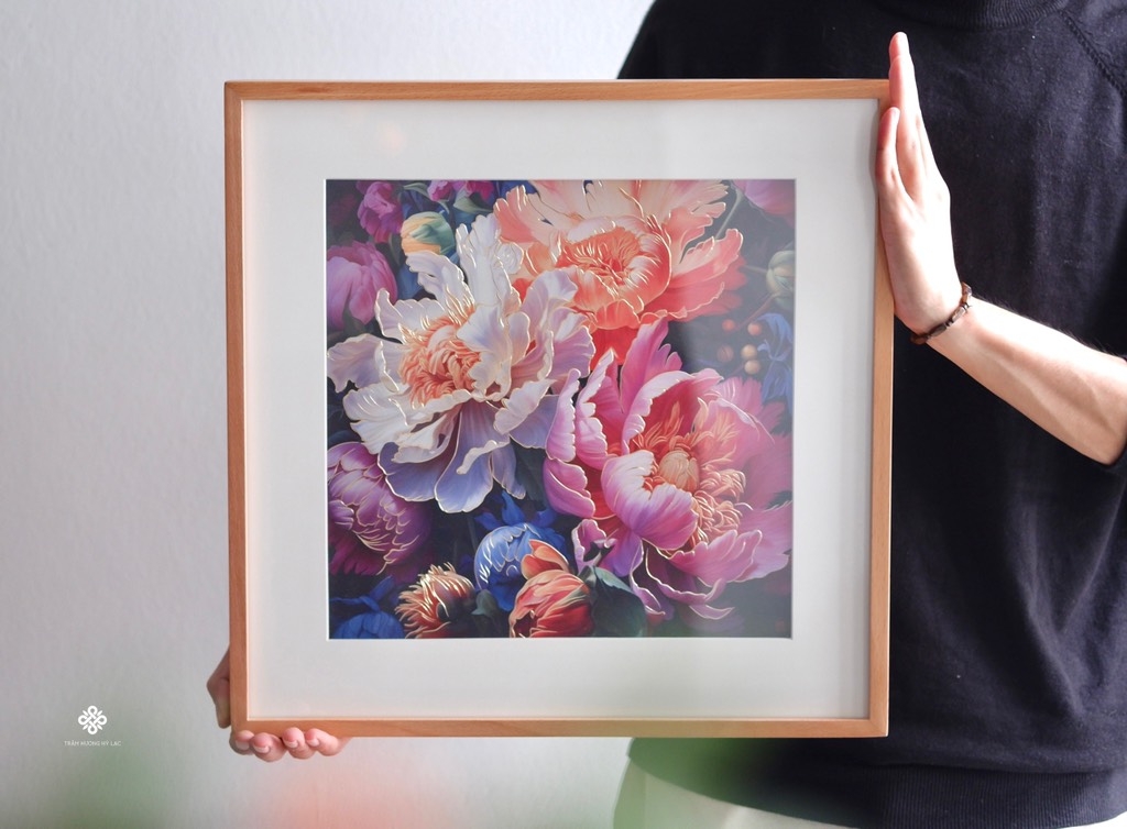Tranh đồng khắc tay Mẫu đơn rực rỡ