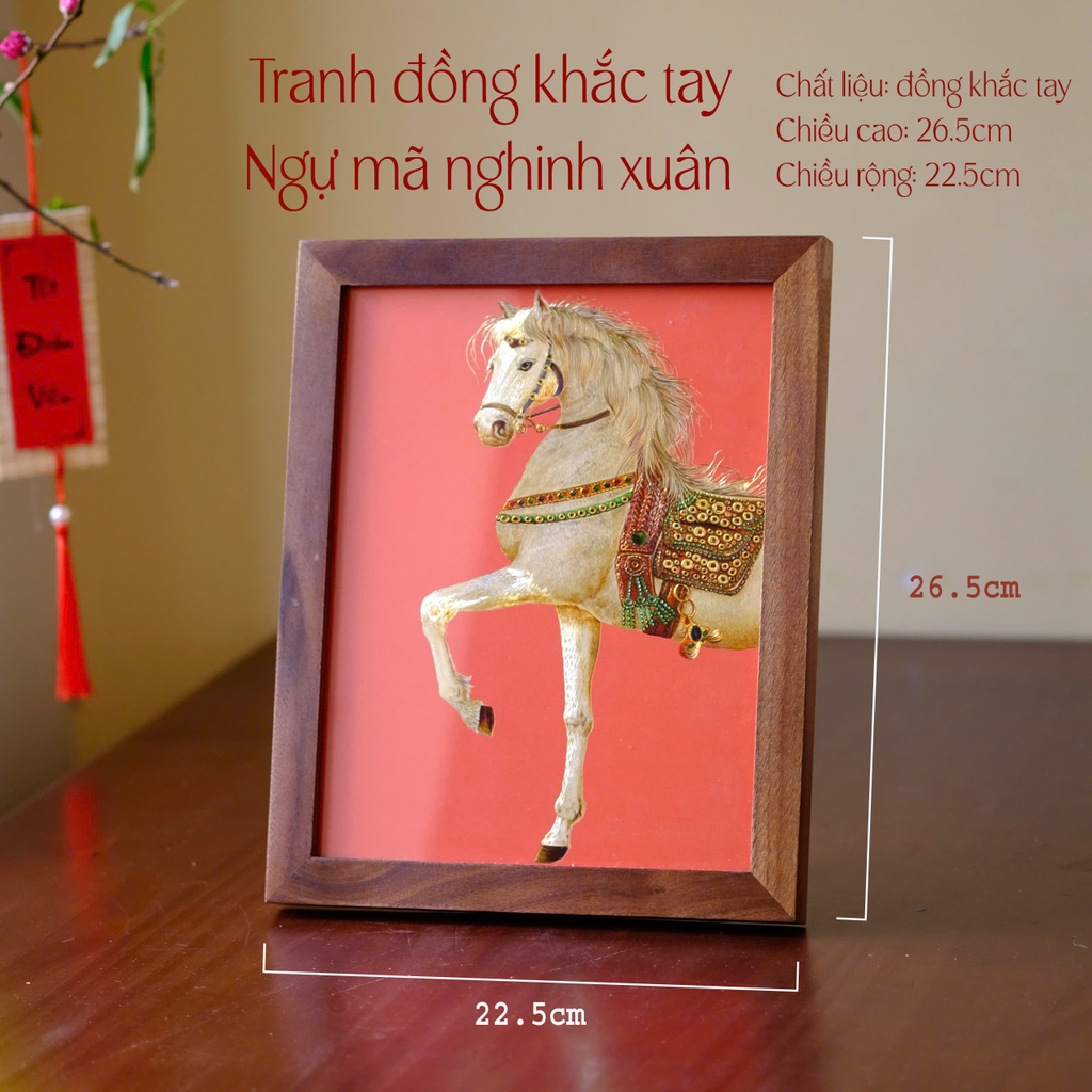 Chất liệu: đồng khắc tay Chiều cao: 26.5cm Chiều rộng: 22.5cm