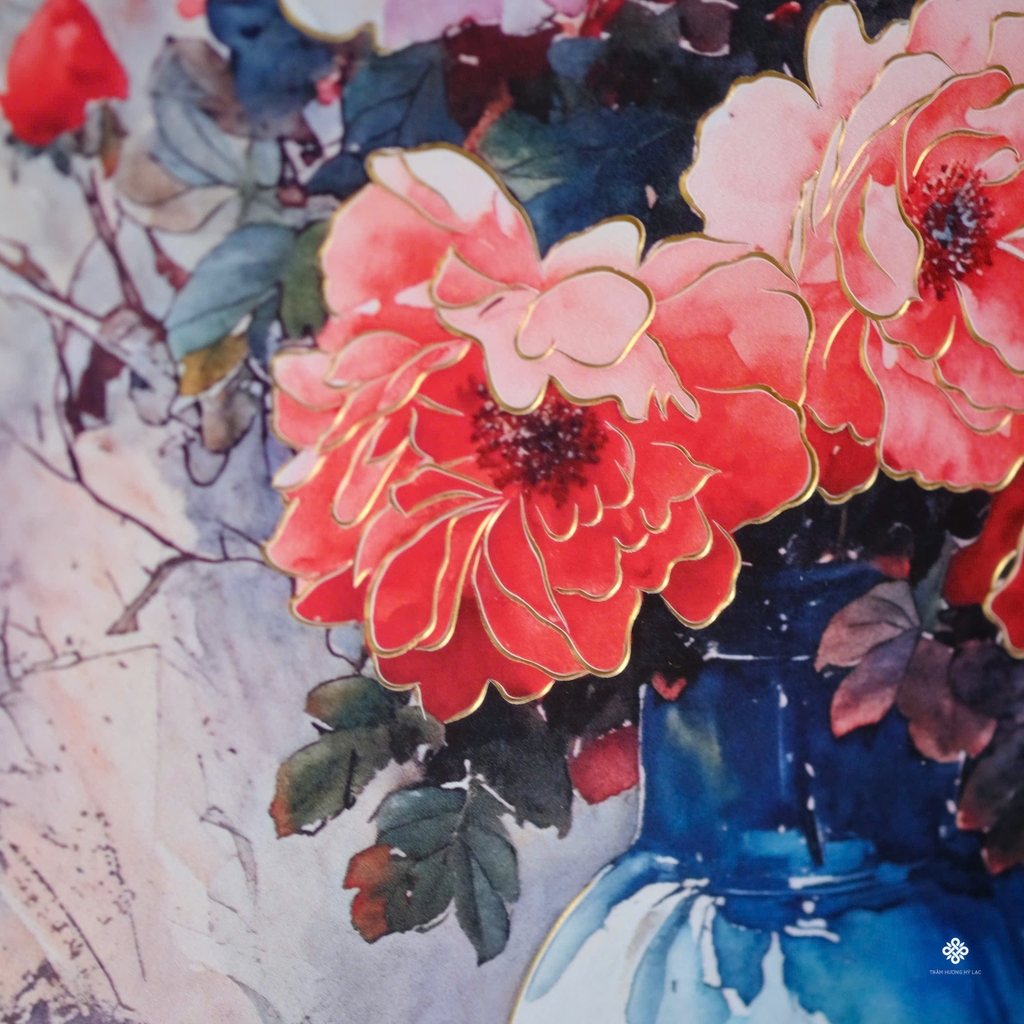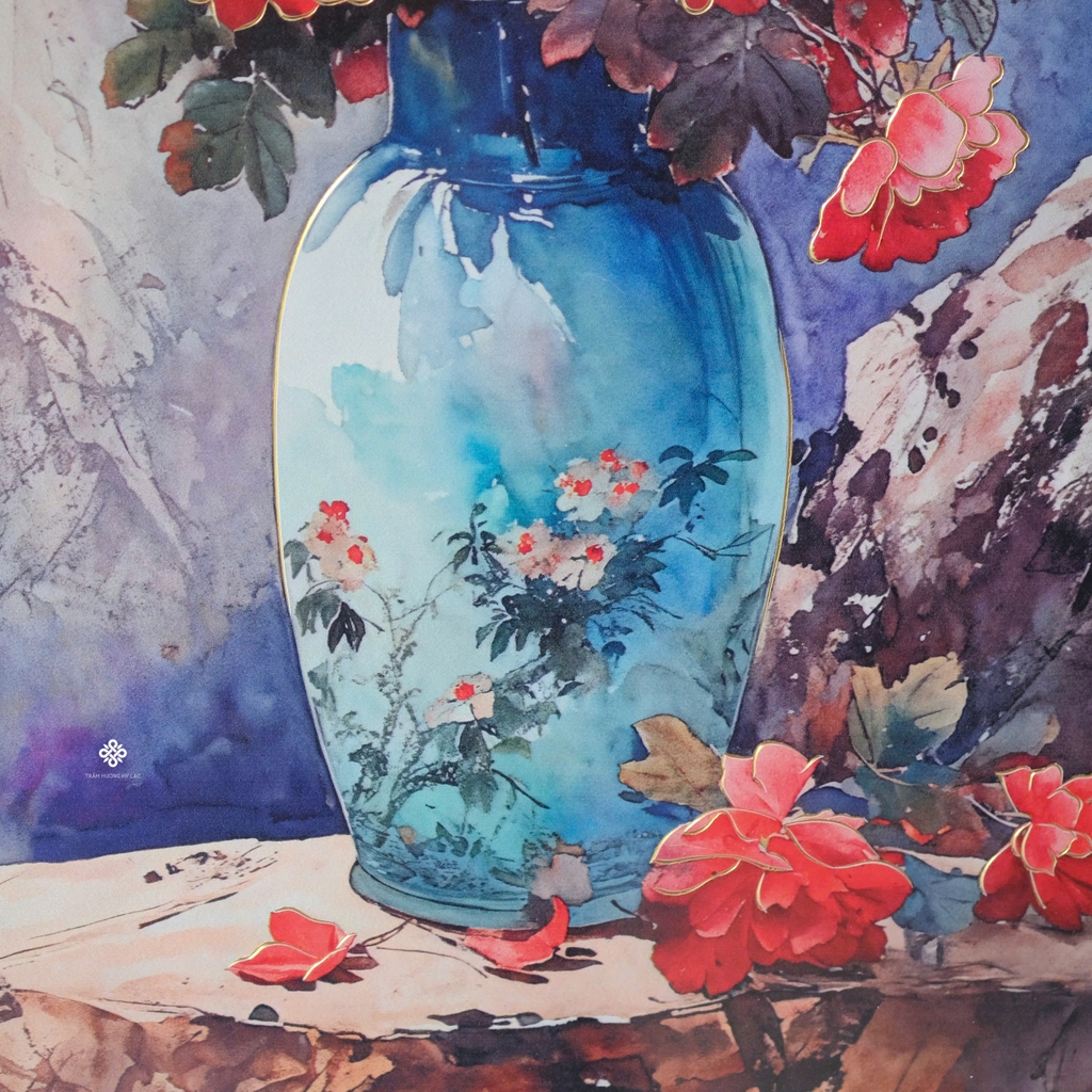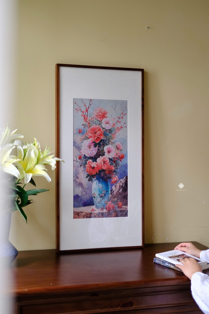 Chất liệu: tranh đồng, khung gỗ óc chó, kính cường lực