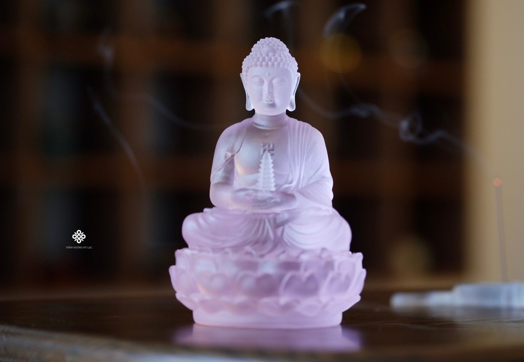 Tượng Đức Phật Dược Sư cầm bảo tháp lưu ly hồng 12.5cm