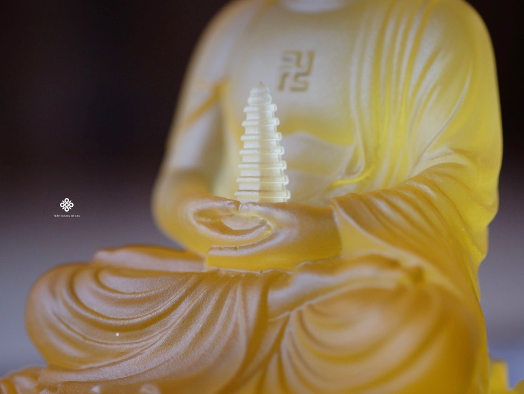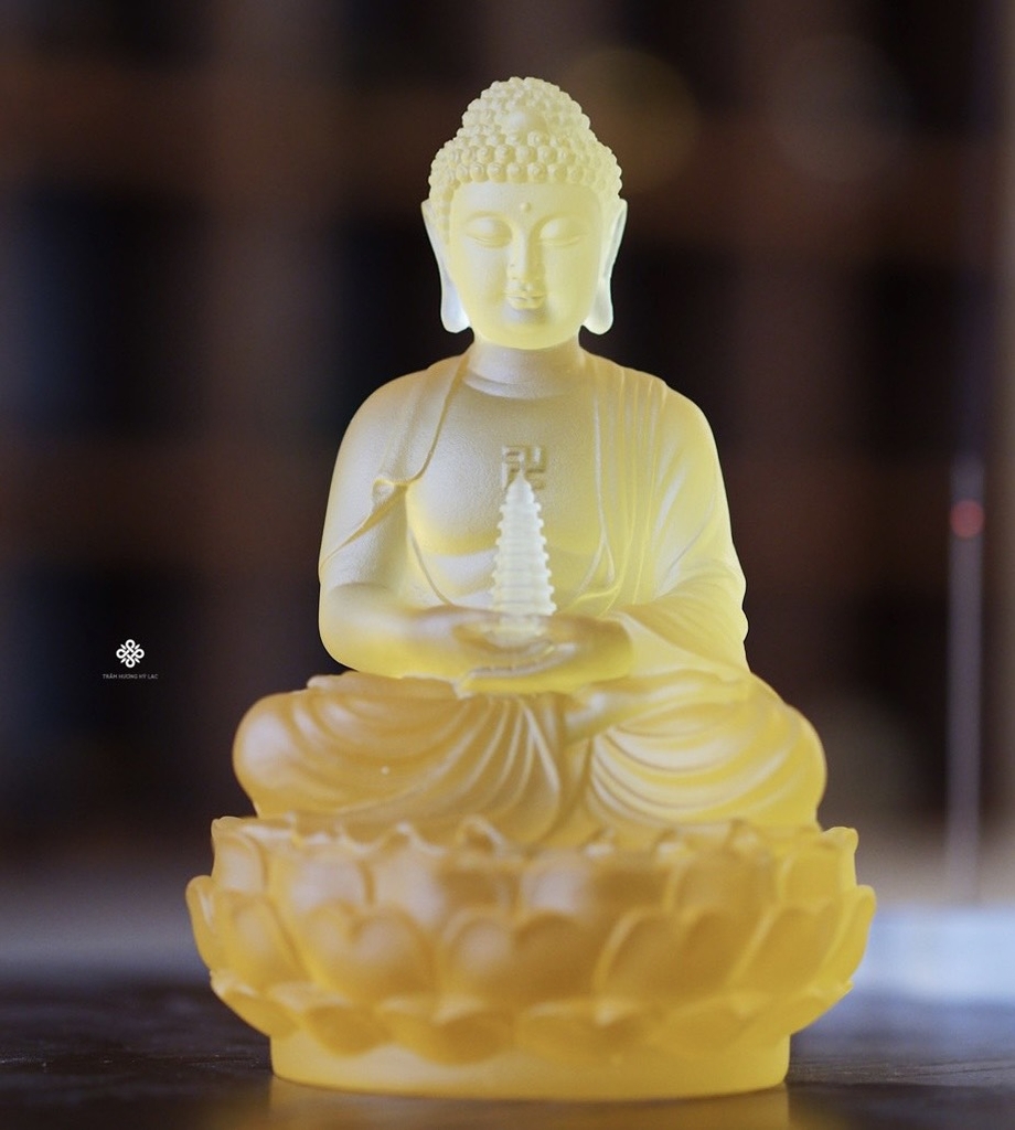 Tượng Đức Phật Dược Sư cầm bảo tháp lưu ly vàng 12.5cm