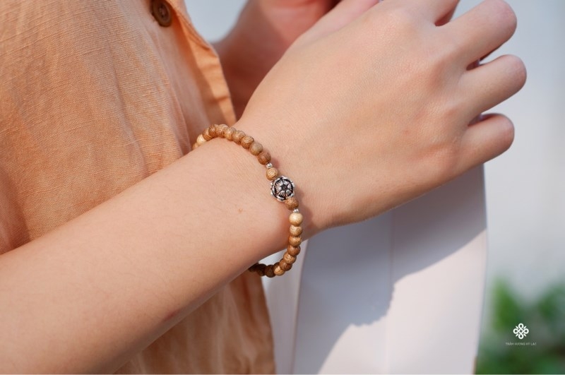 Vòng tay trầm rừng phối hoa sen bạc